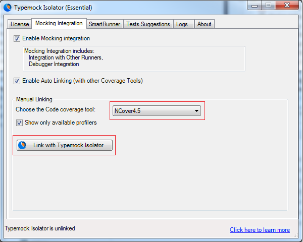 Linking NCover Version 4.5 and Above with Typemock Isolator