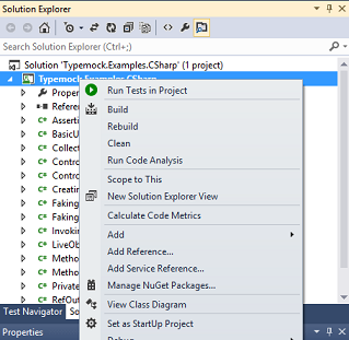 1. In Solution Explorer, right click on the project for which you want to run tests.