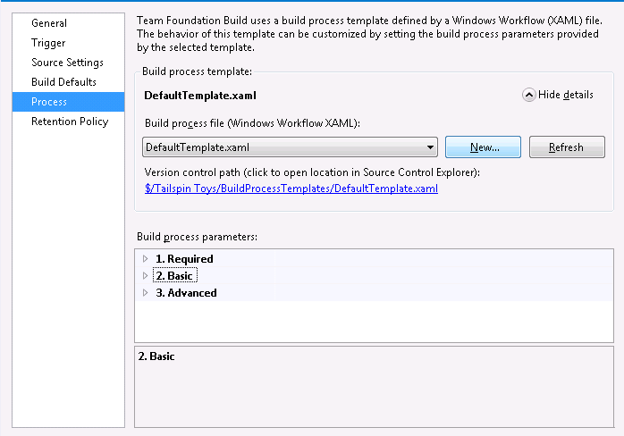 4. In Build Process Template, click Show Details.