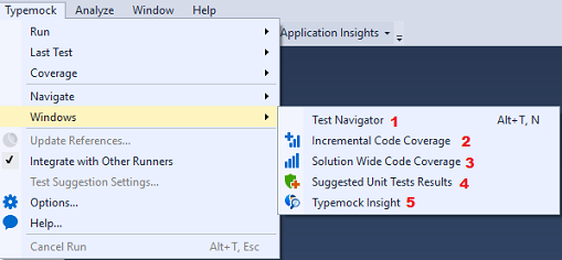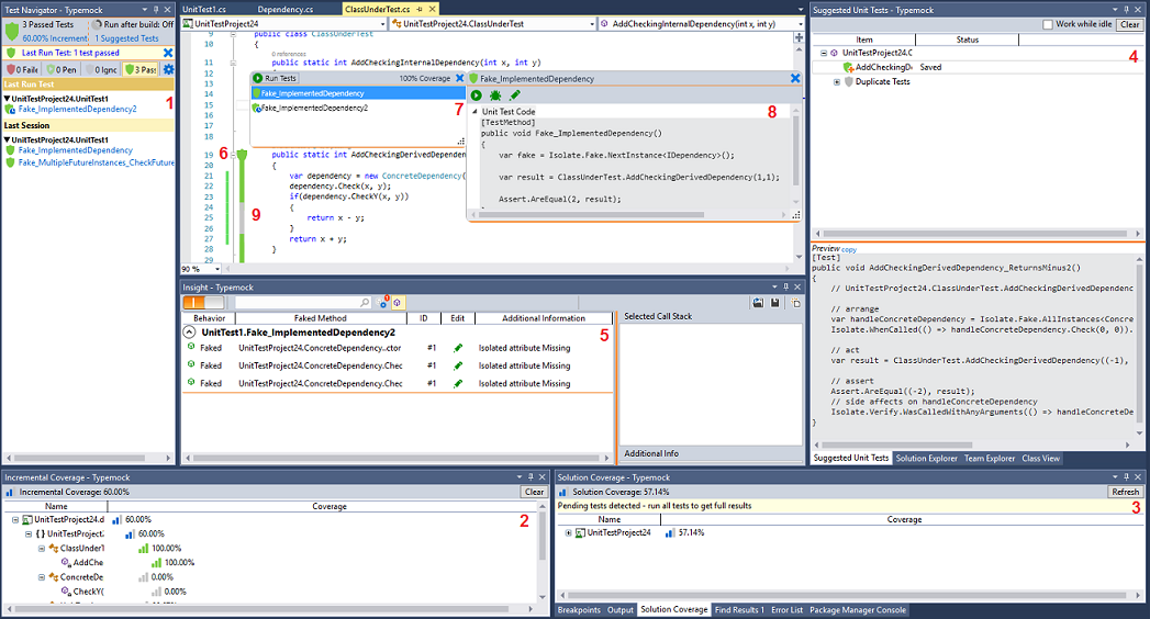 Typemock Isolator integrates with Visual Studio and adds to its UI several different windows: