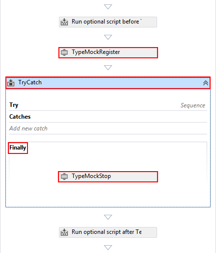 6. Drag a TypemockRegister task from the Toolbox and drop it before the TryCatch control.