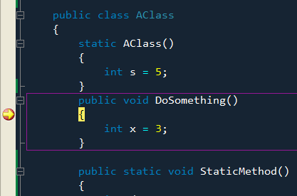To help you identify the mocked method when you reach the method and set a breakpoint at the beginning, Typemock Isolator highlights the method as shown on the following figure: